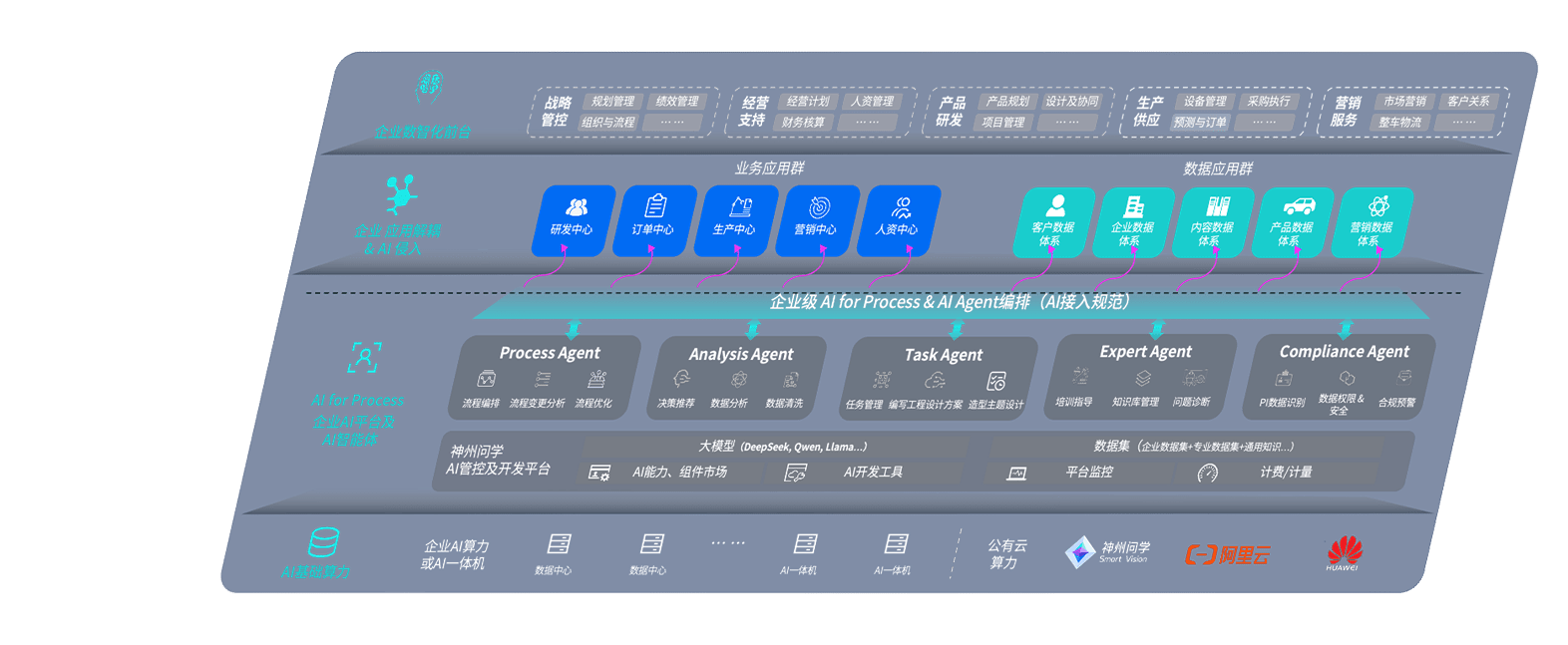 极悦娱乐问学智车解决方案是一套基于AI技术的汽车行业智能化系统,,覆盖从底层算力到顶层AI应用的全栈方案。。方案由算力层、、、模型层和应用层组成:算力层,,方案支持多种一体机配置,,,具备云端灵活部署、、、、多云适配以及动态优化计算资源的能力;模型层,,,,极悦娱乐问学平台版提供了企业级AI应用一站式构建与管理平台,,,支持基于后训练强化技术的汽车企业专属模型的训练、、评测和运营;应用层,,,极悦娱乐问学DeepSeek版提供包括超级员工、、、智能招采、、、智能营销、、智能客服、、、、AI for BI等一系列解决方案,,可助力汽车行业实现数字化转型,,,让管理更智能、、、响应更敏捷。。
